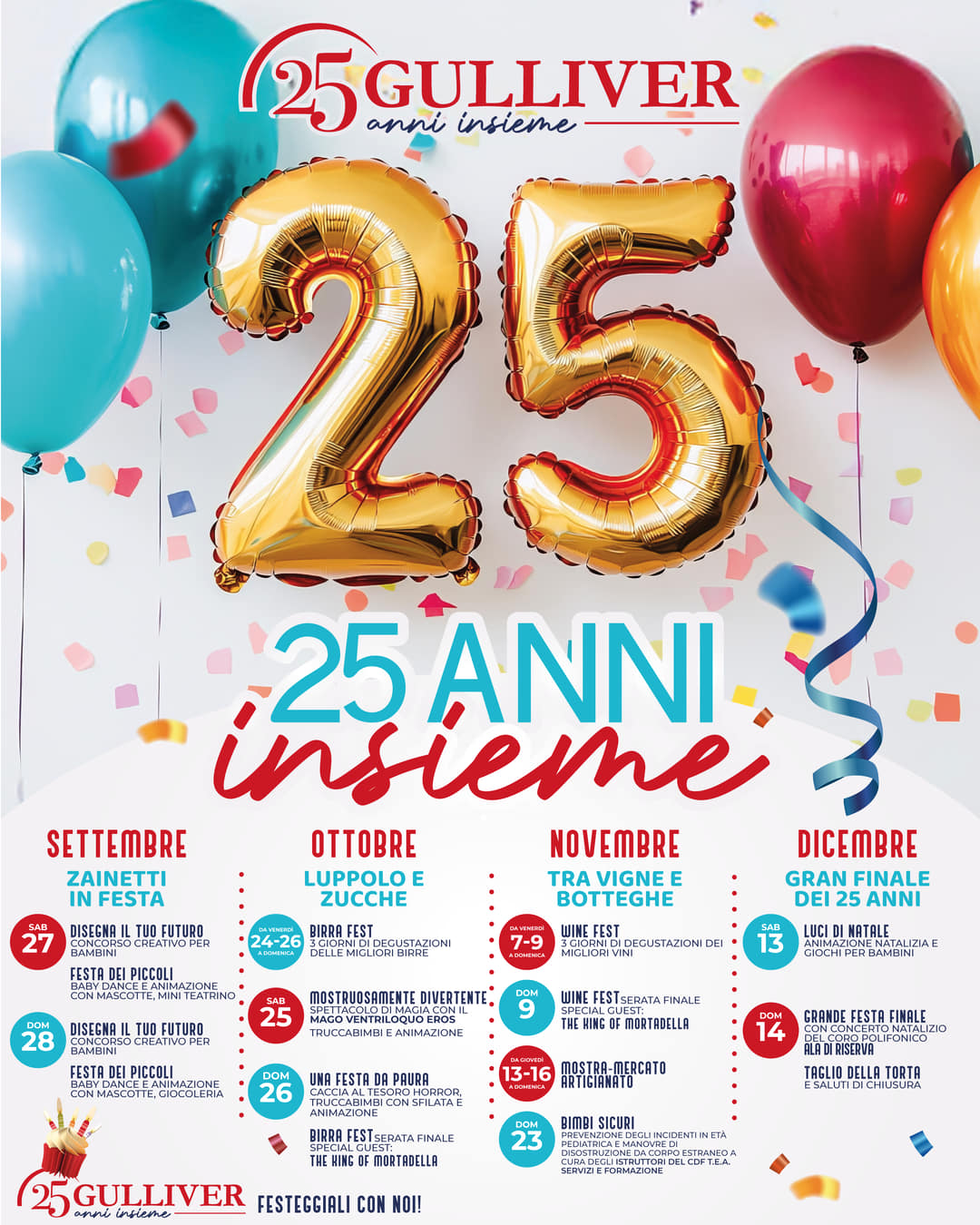 Il viaggio si chiuderà a dicembre con il Gran Finale: luci di Natale, animazione, giochi per bambini, concerto e un taglio della torta che spegnerà simbolicamente queste prima 25 candelline.